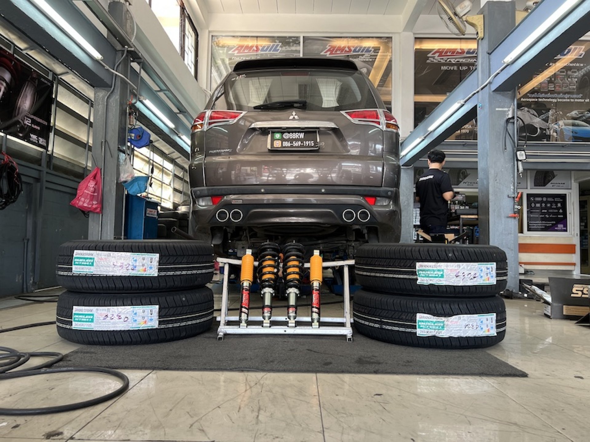 Mitsubishi Pajero เข้ารับบริการเปลี่ยนโช้คอัพใช้งานประจำวัน พร้อมเปลี่ยนยาง