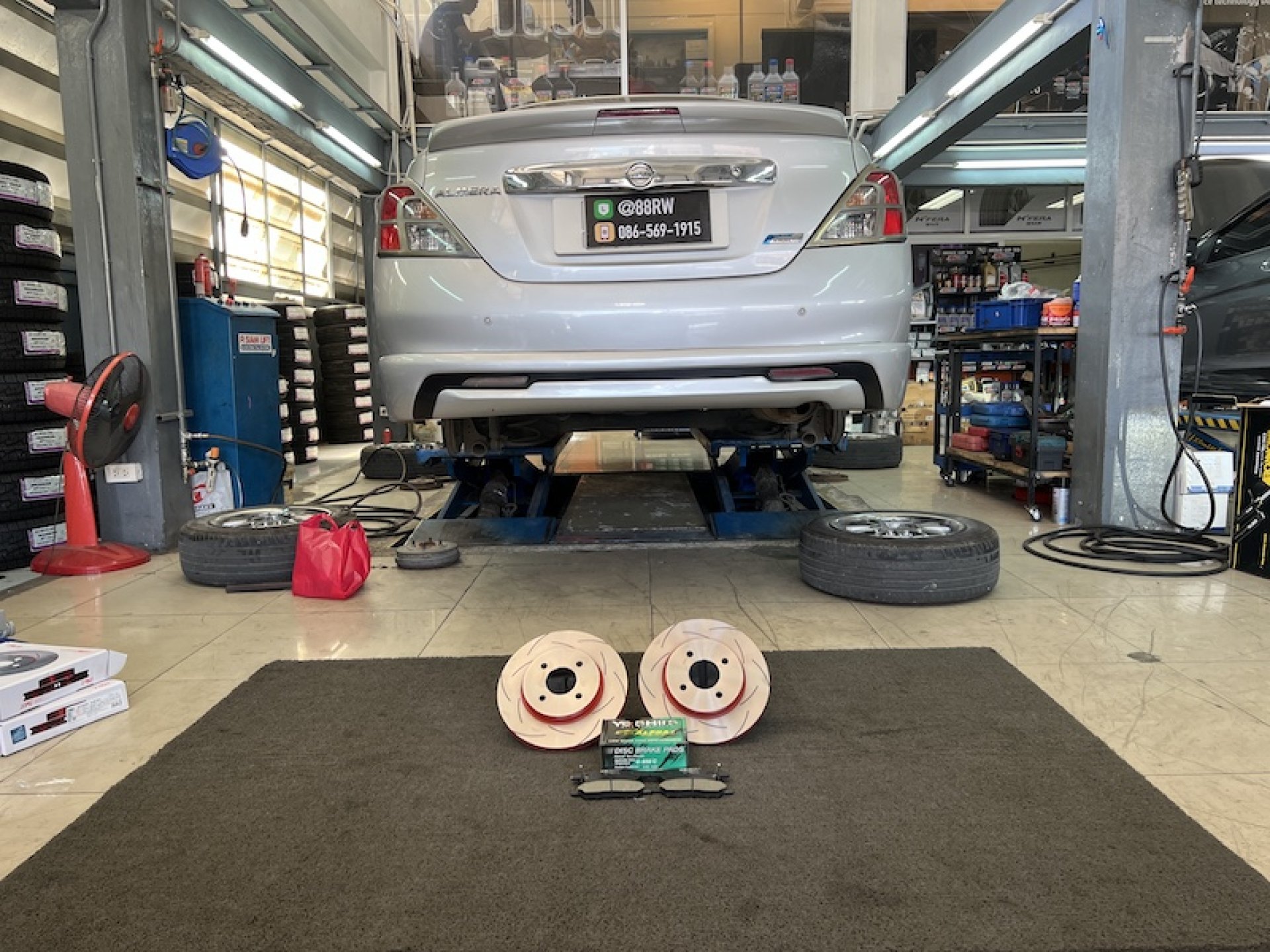 NISSAN ALMERA N17 อัพเกรดระบบเบรก เปลี่ยนจานเบรก และผ้าเบรกเพิ่มความปลอดภัย
