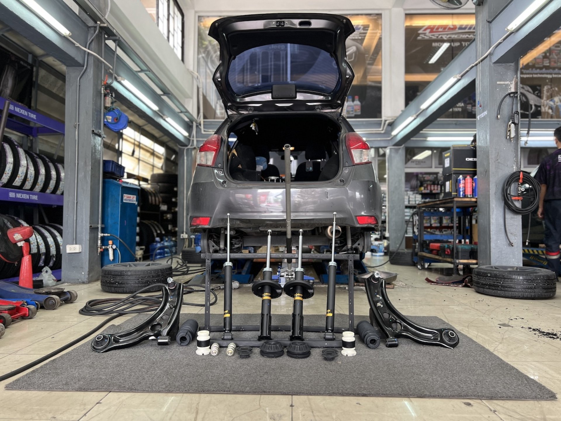 TOYOTA YARIS เข้ารับบริการเปลี่ยนโช้คอัพ ใช้งานประจำวัน พร้อมเปลี่ยนปีกนกล่าง ตรงรุ่น